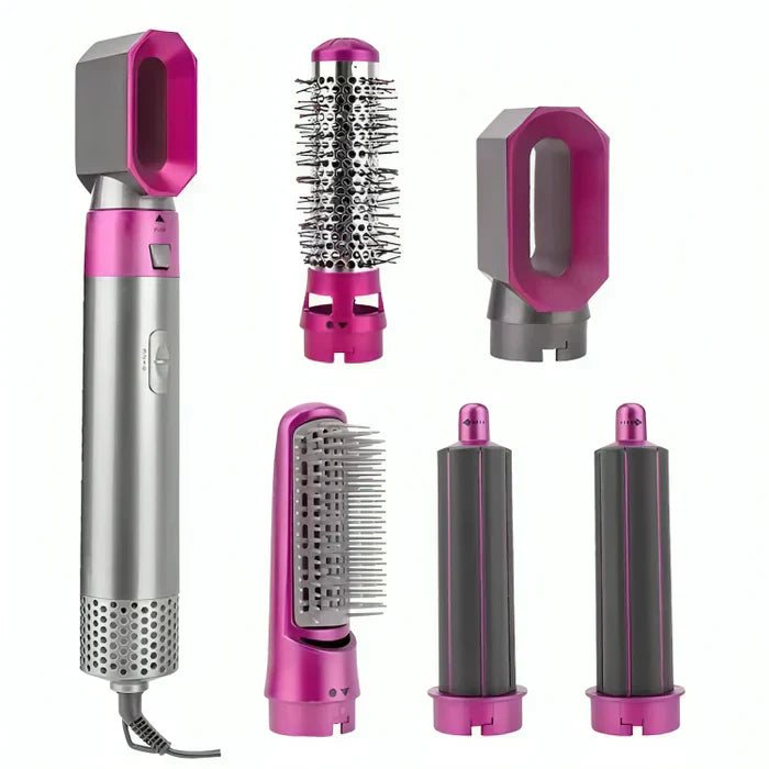 El cepillo para peinar 5 en 1 es una herramienta multifuncional que combina cinco funciones esenciales en un solo dispositivo. Con capacidad de alisar, modelar, rizar, ondular y aportar volumen, es perfecto para quienes buscan versatilidad y practicidad en el cuidado del cabello.