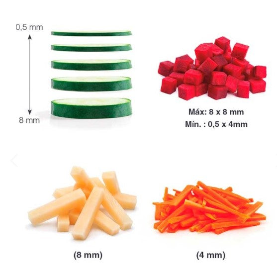 - Precisión y versatilidad : Ajusta el grosor y estilo del corte según tu receta.