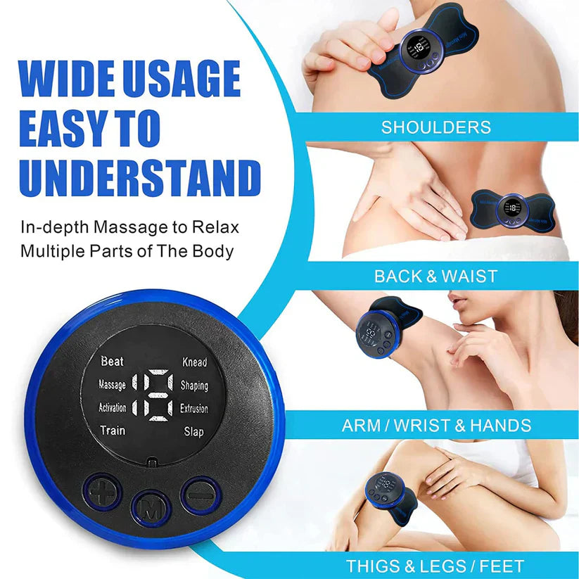Masajeador corporal completo TENS: funciona en diferentes partes del cuerpo. Después de una carga de 2,5 horas, obtienes 8 horas de masaje. Es fácil de usar y bueno para todos. ¡Comienza tu viaje hacia la relajación y el bienestar!
